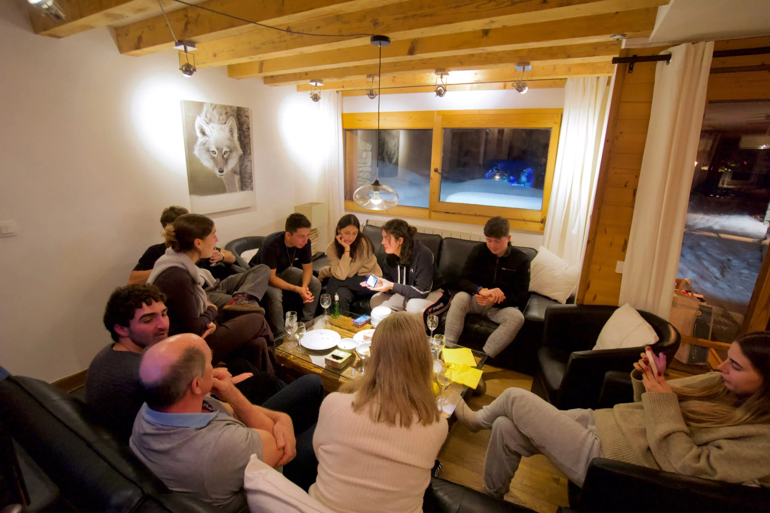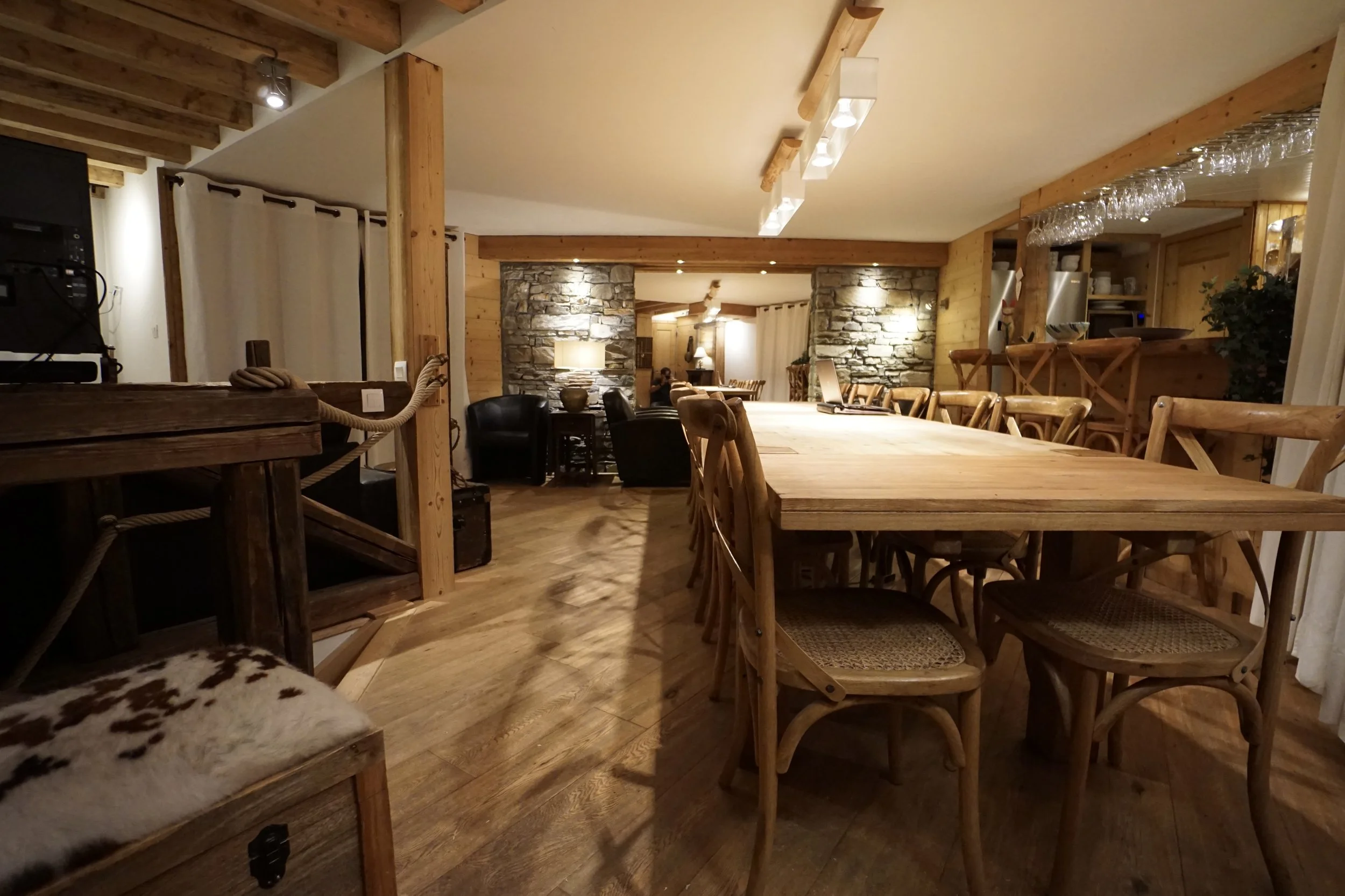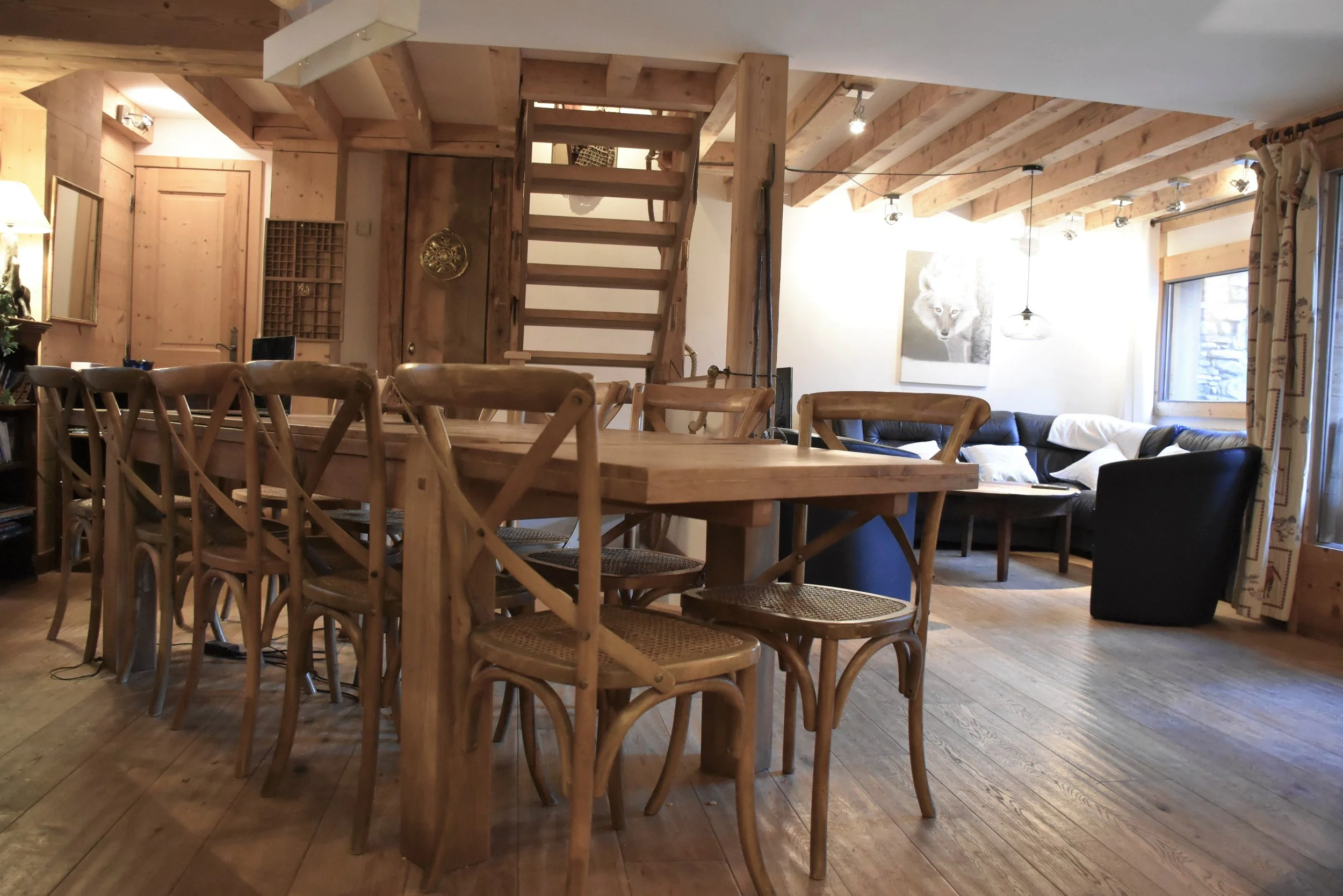 The living area in Chalet Foxtrot includes plenty of couches around the TV, a 12-person dining table and a boot room. On the tables are books about Val d’Isère in case you are interested in the history of the region.